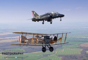 Click on the picture on the right to view the YouTube video of the historic mid-air formation between a 208 Squadron Hawk (XX350) and the Shuttleworth Collection’s Bristol Fighter flown by Paul Shakespeare (opens in a new window).