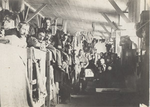 On many different occasions while I was there, Karlsruhe was visited by our machines. Long before they reached us, the sirens gave the warning of the air raid. You could hear the people in the streets running for shelter and shouting "Flieger come, flieger come". Then for about an hour all would be quiet. Trams and all traffic would be stopped. One afternoon we counted nine machines right over our heads at a height of about 12,000 feet. We also saw German machines going after them, but they always managed to stay a safe distance from them. During raids the German officers always made us go inside. It was not for our safety, but for fear of our cheering, which we did at every opportunity.