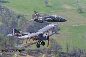 The current Commanding Officer, Wing Commander Nick Gatenby said: “It was a tremendous privilege to be given the chance to take 208 Sqn’s current aircraft, the Hawk T1 and formate it along side one of its first, an original WWI Bristol Fighter. The challenge of flying both these aircraft in close formation -these aircraft in a unique aerial shot would be one that would raise awareness of the enormous sacrifice made by so many, so long ago.”