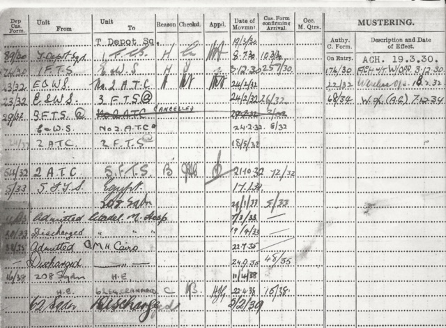 in March 1930 at the age of 19. He was immediately sent to a training depot somewhere and a part of his RAF Service Record is attached here for your information. I doubt it’s much different than many others in his position but if someone can help me to decipher some of the hieroglyphs and/or attachments I would appreciate it!