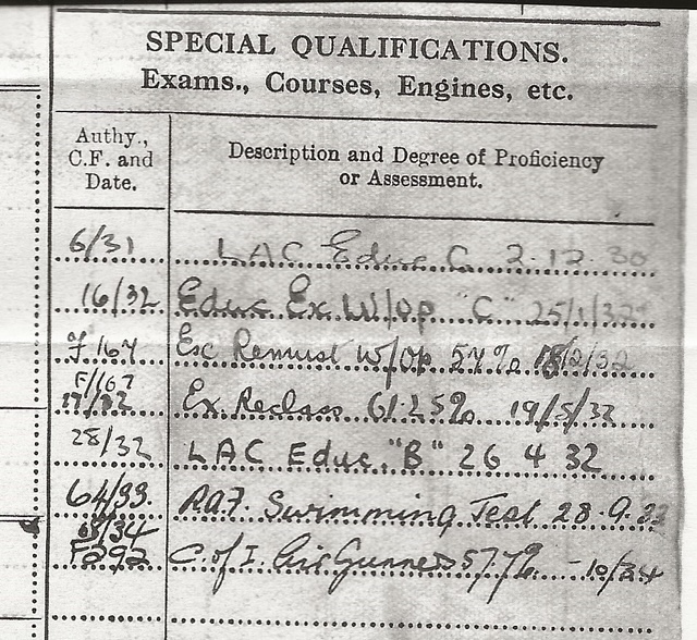 He obviously remained in the UK whilst he underwent various educational and training requirements before being posted to a squadron. Copies of his training and educational qualifications are attached here for your information. I have no idea what some of the pass marks would have been, but he looked pleasantly average to me. Not bad, but not exceptional, unless you know different?