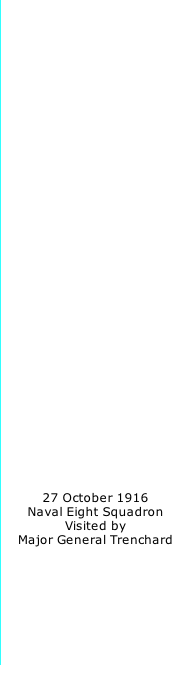 to the stranded machines. The Squadron was visited by Major-General Trenchard, accompanied by Colonel Hudson (No. 2, A.D.), Major Spicer (No. 5, A.A,P), Captain Corballis, and Lieutenant Maurice Baring. The General, with his accustomed concern for the well-being of Officers and men, made us feel at home right away, and with the thoroughness for which he had become famous, set about satisfying himself that we were au fait with the supply and repair facilities in the Field, and that we had everything we wanted. The General’s “Make a note of it, Baring,” with which we were to become so familiar, was heard for the first time.