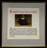 The President of the Naval Eight / 208 Squadron Association, Air Marshal Sir Rob Wright, presents the 2011 Bromet Memorial Trophy to Flight Lieutenant Will MacDonald.