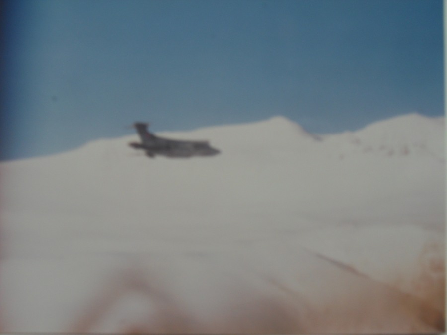 m our target we descended to 100 ft for our run-in to our simulated target (a little hut/transformer station) on the south-east coast of Iceland. Even though we picked up the electronic emissions of the defending F15’s they failed to “lock-up” and we appeared to make it through to our target unscathed (we will never know as we didn’t get any feedback). After the target we stayed at low-level and had an enjoyable sight-seeing trip over the Icelandic ice-cap (see the photos). After a 2½ hour flight we landed at Keflavik, where the Americans helped us to turnaround our aircraft. Well it was lunchtime and we were hungry so we strolled off the “O Club” for a bite to eat. In traditional American fashion we ate pizza and drank coke-cola. The return journey was an uneventful straight flight back to Lossiemouth (1 hr 45 mins) and we were back in time for tea!