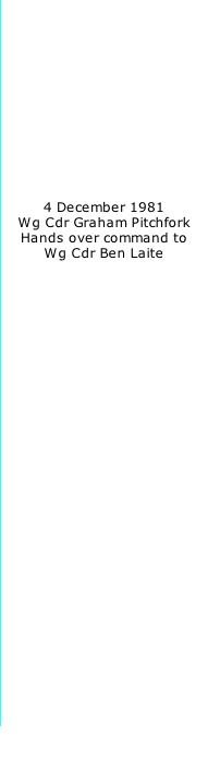 the most exhilarating period of my 36 years RAF service came to an end on 4 December 1981 when I handed over to Ben Laite (34). As I did on that dark day almost 30 years ago, so I do again and pass the baton to Ben who will resume the deeds of the Buccaneer Chapter at the next Reunion Dinner and edition of the Newsletter.