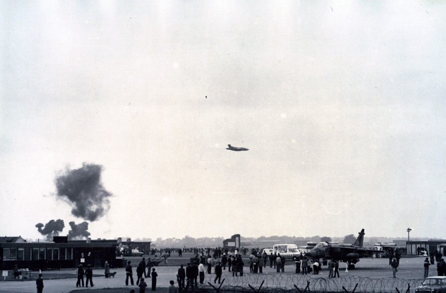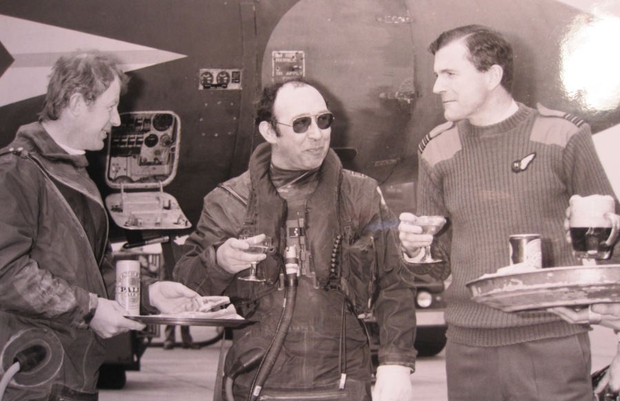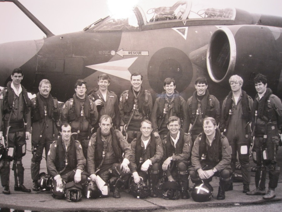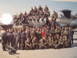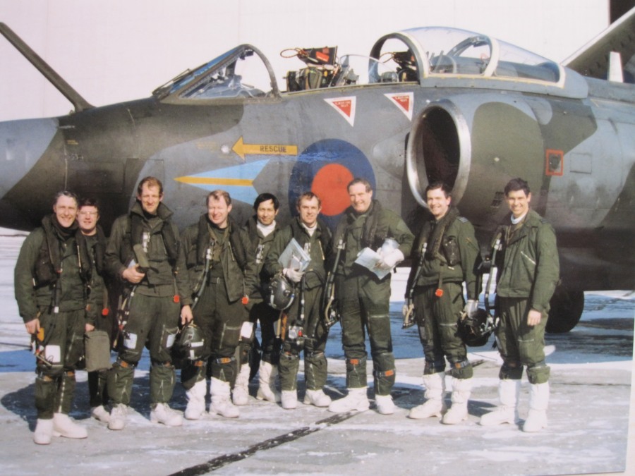Then there was always Goose Bay where we could fly a lot of low level sorties and not annoy too many of the locals. Our AOC [13], AVM Mike Knight, came out to visit us and fly with us on a sortie. Back at Honington as the weather got better, so the social life moved outdoors and our lovely wives challenged 9 Squadron to a game of rounders. And all the training was to be focused on a trip to Cold Lake in Canada for a Maple Flag exercise [15] & [16]. Although we were disappointed that we were there in the high fire risk period which meant no dropping of live weapons, we nevertheless enjoyed pitching our wits against the USAF F15s and the Ground Defences. And when the range areas were closed through bad weather we persuaded the Canadians that a low level Buccaneer sight-seeing trip amongst The Rockies [17] was a good idea. And back at Honington, during the Families Days, 208 invariably flew demonstration 4 ship airfield attacks. You ought to be able to spot your Association Secretary, Treasurer, and Membership Secretary!
