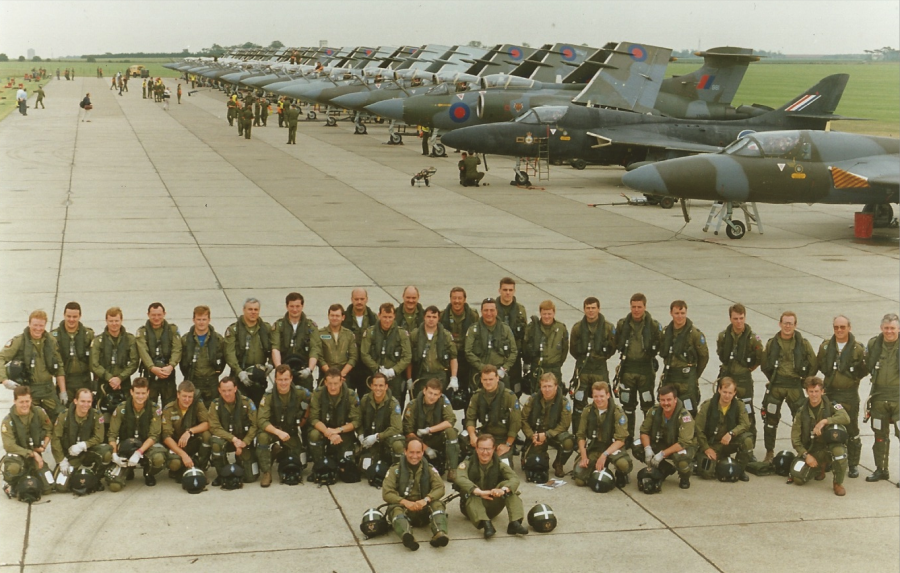 2011, a decision was made for the guest speaker to move forward from the Sqn’s involvement in the First Gulf War to Hawk T1 training at Valley. On reflection, this created an impression that little happened on the Sqn at that time: as the following paragraphs show, nothing could be further from the truth. Or at least one version of the truth, as these memories are being reassembled after twenty years from the Sqn diaries, the F540 and a few fuzzy recollections following too many happy hours. Yes, the end of the war brought a bit of an anti-climax; the demise of the Buccaneer seemed to have been put on hold, she even received a face-lift in the form of a Sky Guard Radar Warning Receiver (RWR) and an attempt at integrating the nav system and new GPS (despite the threat of strike action by the nav union). However, savings had to be made and there was little real chance that the old girl would be extended beyond 1994.