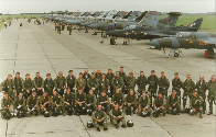 With Bill Cope still at the helm, the Sqn had its 75th Anniversary - it was a tense affair with 12 Sqn almost spoiling the party; thankfully the execs took a tactful retreat leaving the Junta to accelerate (for the benefit of the gathered guests), the demise of another musical masterpiece and some serious carpet time with the Stn Cdr (John Ford). The highlight was a call from 24 Sqn SAAF wishing us well! After many years of Tactical Leadership Programme (TLP) drought, 208 Sqn were invited back to Belgium to take part in course 91-6, unfortunately we had to take a 12 Sqn crew with us. This was ostensibly a short-range course with the addition of two F111s (only one ever got airborne) and all the other roles (including Suppression of Enemy Air Defences (SEAD) and Recce) being completed by the Buccs.