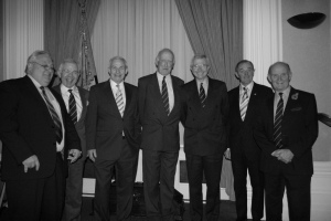 Seven of the eight Squadron Commanders from the Buccaneer era were present at the Naval Eight / 208 Squadron Association Annual Reunion Dinner held at the RAF Club in London on 27 October 2012. The Magnificent Seven (L-R) were: Nigel Huckins (1992 – 1994); Graham Pitchfork (1979 – 1981); Brian “Boots” Mahaffey (1987 – 1989); Phil Pinney (1976 – 1979); Ben Laite (1981 – 1984); Bill Cope (1989 – 1992); and John Ford (1984 – 1987). This article first appeared in the 2013 Newsletter.