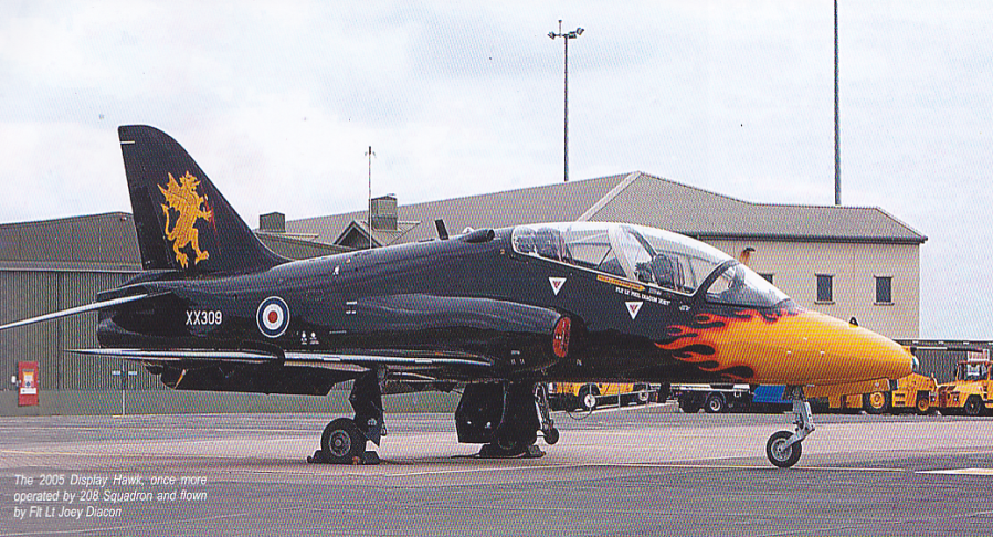Diacon flew 50 displays during the 2005 display season (4), at various locations around Europe. Approximately 3 million people watched the display and the Squadron received countless letters, telephone calls and emails congratulating him. It was, without doubt, the most successful season for 208 Squadron