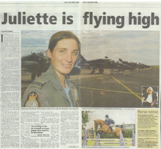 If ever a girl knows how to get an adrenaline buzz, it’s 24-year-old Juliette Thurston. Not only does she enjoy the excitement and risks of cross-country riding on horseback, but her day job really gets the pulse racing – she’s a Royal Air Force flying instructor teaching the pilots of the future how to handle Hawk jet fighters at stomach-curdling speeds over Anglesey and the mainland.