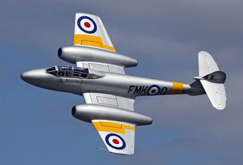 In August, 1950 the Squadron was allotted a Meteor VII for the conversion of pilots onto type. This was carried out by two Squadron pilots already familiar with the Meteor. It is interesting to note that it was considered quite satisfactory to convert pilots from single piston-engined aircraft to twin jet aircraft on the Squadron without having to send them on a special conversion course. By January of the following year all pilots had completed the conversion and the Squadron received the first three of the long awaited Meteor IXs. By March the re-equipment was almost complete and eleven of the Squadron’s valiant Spitfire XVIIIs were allotted to 107 MU. The next problem was for the pilots to learn how to use the new aircraft operationally. Initially experience was gained in long