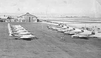 By June and July of 1951 the Squadron was making its first attempts at firing both air-to-ground and air-to-air. The results, as expected, left much to be desired but then little was known about the harmonisation of the gyro gunsight for this type of aircraft and few pilots on the Squadron had fired air-to-air on a drogue anyway. As the armament practice camps at Nicosia progressed through the year the results began to improve as pilots became familiar with the problems involved. In October the Egyptian Government commenced its programme of non- co-operation in the Canal Zone and so the Squadron was requested to carry out reconnaissances of the Canal Zone and the Erskine line from its new base at Abu Sueir.