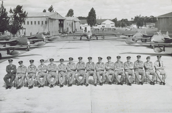 The Squadron soon settled down to routine training and in June went on detachment to Royal Rhodesian Air Force Station Thornhill for an armament practice camp of intensive rocketing and air to ground firing. This terminated in a most successful tour of the Rhodesias and Nyasaland before returning to Eastleigh. During the following months the Squadron participated in various exercises in co-operation with the Army and the aerobatics team perfected its performance which was ably demonstrated in August before the Sultan of Zanzibar on the celebration of his 80th birthday. The team at this time consisted of Squadron Leader R. Ramirez, Flight Lieutenants G.E. Ord, S.W.R.A. Key and P.R.E. McLeland and Flying Officer T.E. Riddihough.