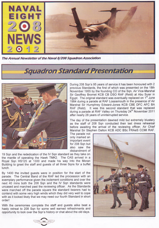 The presentation of the Squadron Standard in the 2012 Newsletter.