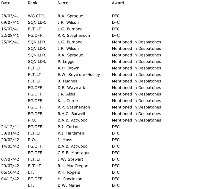 Individual 208 Squadron Honours and AwardsWorld War Two - Part 1