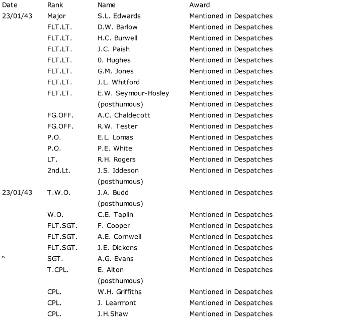 Individual 208 Squadron Honours and AwardsWorld War Two - Part 2