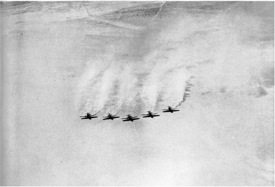 On 8th June the Army advanced into Syria meeting unexpectedly heavy opposition which held up the right hand Brigade. However our troops were soon advancing along both roads to Merdjayan . At this stage the recce pilots were experiencing great difficulty in identifying our own troops by the agreed sign, namely, a white square displayed on the ground and this limited their usefulness initially. On this day Flight Lieutenant Aldis while on a recce sortie was reported missing, believed killed. Merdjayan was occupied by our forces on 11th June. Late that afternoon a recce was despatched to verify a report that enemy mounted cavalry were in the vicinity of Herzive. The pilot reported a large number of horses watering in the area, otherwise no movement. These animals were subsequently discovered to be the property of the Cheshire Yeomanry!