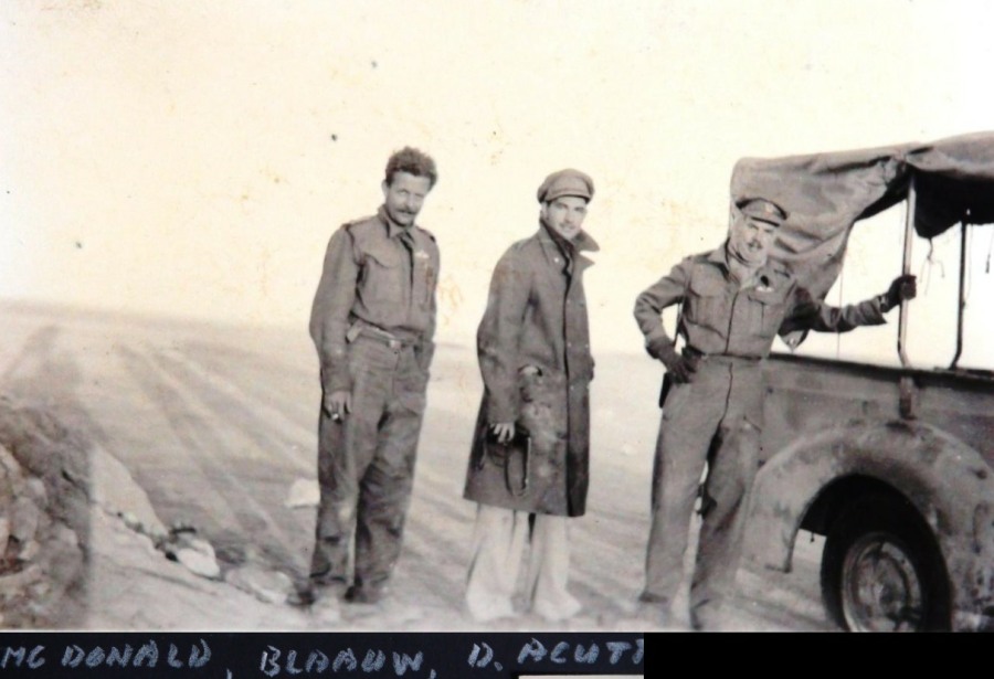 At the beginning of March an advanced party of six pilots from No. 40 Squadron SAAF arrived at El Adem with three aircraft to gain operational experience before the latter relieved 208 Squadron at the end of the month. Additional personnel arrived at El Adem throughout the month while the Squadron continued to provide information on the enemy’s movements and disposition. Finally on the 20th March the Squadron advanced party left by road from Sidi Azeiz for a well earned rest at Moascar Camp, Ismalia prior to re-equipment.