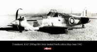“While flying Hurricane ABG 862 on a tactical reconnaissance 3 miles east of El Duda at 0755 hours, at 5000 feet, and diving slightly at 240 mph I saw a shadow pass over my plane. I took immediate evasive action in a steep left hand diving turn and saw tracer pass above my starboard wing. I then saw 3 aircraft coming out of the sun. As my guns were not firing, owing to insufficient pressure I decided to make our own lines some 15 miles southeast, in the Gasr El Arid area. I accordingly took evasive action chiefly by executing steep slipping or skidding turns into whichever aircraft happened to be attacking me.