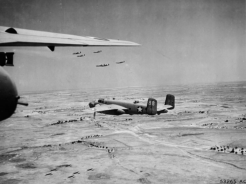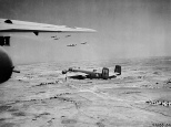 on the front while the only continuous activity was the enemy “digging in”. However, in October the enemy airfields had become waterlogged causing their aircraft to be brought out from their diggings and shelters, on to open dry ground. This produced an immediate increase in Allied air activity as B25s, Bostons and Baltimores poured bombs onto enemy landing grounds and aerodromes causing a great deal of damage.