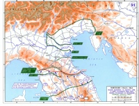 The next main German line of defence was the Gothic line which lay across the Apennines between Pisa on the west coast and Rimini of the east. The Germans had fought a delaying action all the way back as otherwise they could not have established themselves after a non-stop rush through Italy. The advance of the Army therefore slowed up and the Germans used every means in their power to stop us. These means involved in particular the use of mines and the demolition of bridges. Wherever the Squadron went the area had to be cleared of mines and booby traps, an additional and particularly unpleasant hazard.