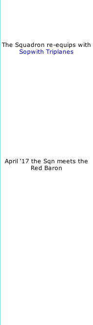 ents around Ostend, escort French photographic aircraft and protect the French artillery machines. In this role the Squadron converted to Sopwith Triplanes. The start of work at Fumes was most inauspicious. As if delays caused by the weather were not enough two machines were damaged at Auchel because the wind indicator was wrongly laid out; another pilot crashed on take off; and a fourth crashed on a forced landing having become lost near the lines. Small crashes were an everyday event as pilots had not yet got used to the new Triplanes. However on April 5th the bad weather broke, and operations started in earnest with preparations for the Vimy Ridge assault during the early hours of April 9th. The class of the Sopwith Triplane is illustrated by the following account of Flight Lieutenant Little’s escapades: “At 6.45pm on 7/4/1917,