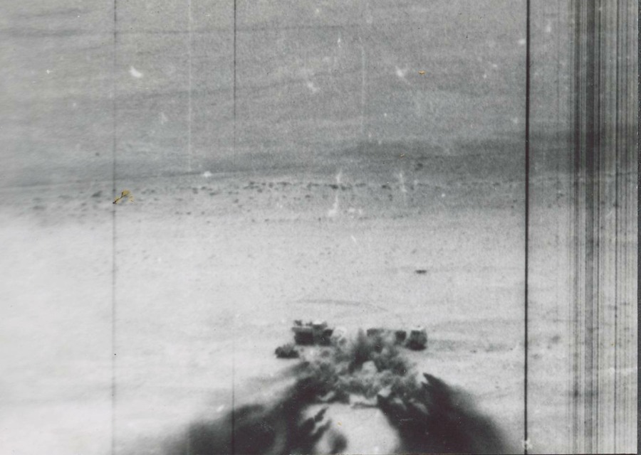 These pictures show one of the fire power demos staged for various local rulers: this was one for the Ruler of Bahrain. Here is one of the target arrays [14] and here [15] is a gun sight picture of a 30 degree dive 3” Rocket attack. Centre spot pipper on the back into wind vehicle - no way would the rockets go over the top, or into wind.