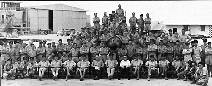 signing the Visitors Book in the Officers Mess at the subsequent Guest Night and Birthday Party [21]. Here also, is a very rare photograph of the entire Squadron the morning after the parade. Seated in the centre are Christopher Draper; the Squadron Commander (Tony Chaplin); and Sir Geoffrey Bromet [21a].