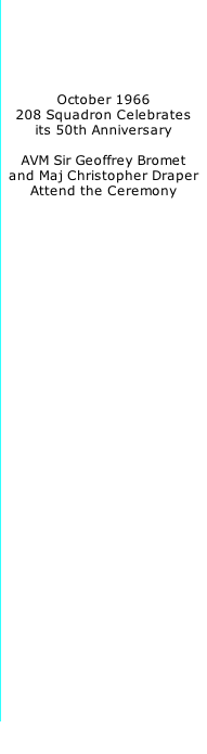 In 1966 a very special event took place : Naval 8 / 208 Squadron's 50th birthday attended by AVM Sir Geoffrey Bromet, the squadron's first CO, accompanied by his wife Dame Jean(nee Conan Doyle) Bromet and many