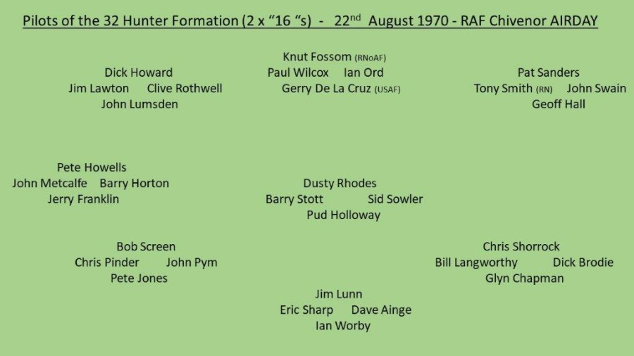Going back to earlier years, for the Air Day on 18 August 1970 Ian Worby, OC Flying Wing, led a 32-