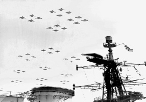 Doug was near the back of the huge formation along with guys like Dai Heather Hays. All went well until it came to flying down Ma'ala Straight, because while the Navy at the front were flying at a reasonable height they might just have forgotten those at the back. Doug felt as though he was flying amongst the chimney pots, and afterwards some of the formations overflew the carriers. Great fun!