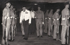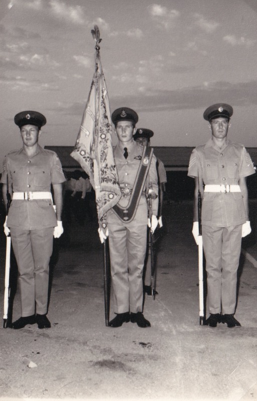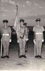 During his address Sir Geoffrey told the Squadron just how strong his ties with the Squadron were and in fact it was he who presented the Squadron with its Standard at Abu Sueir in 1955. To the right Bob Partridge our Standard Bearer is seen here with Sergeant Stevens and Sergeant Neville, two of our SNCOs.