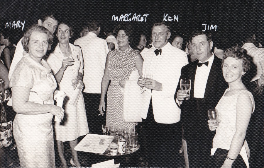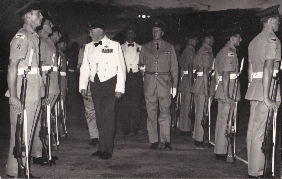 with Sir Geoffrey while his Flight is inspected. Ian is one bloke for sure who would rather have been airborne. However, somebody had to be on parade….. Heh, heh, heh!!! Now we are really getting down to the serious part of the evening's work. On the right, my guests, Ken and Margaret Warburton (centre) are chatting to Ken and Mary Kenefick and what splendid friends they have all been to me.