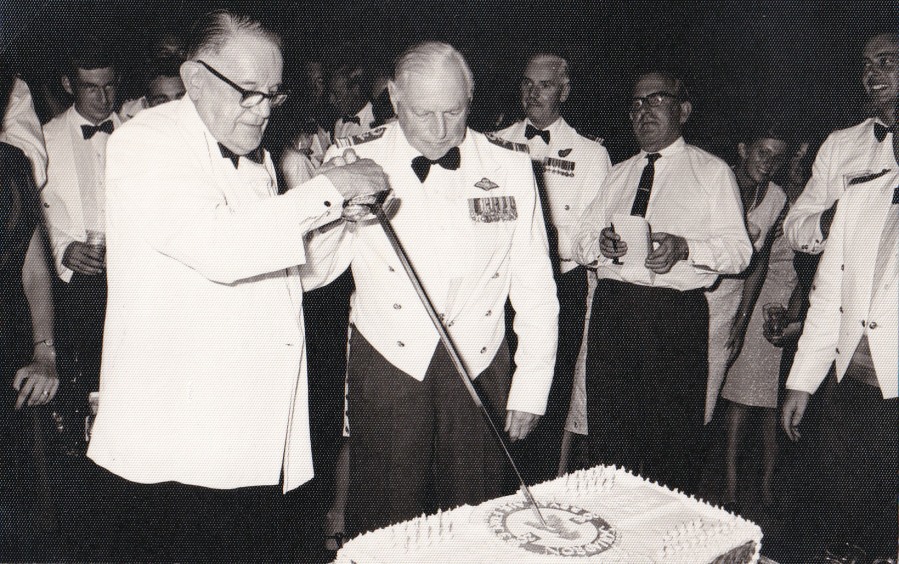 One of the highlights of the evening was the ceremonial cutting of the Squadron cake, a magnificent creation, by the Mad Major and Sir Geoffrey. Major Draper succeeded