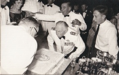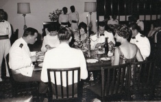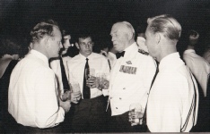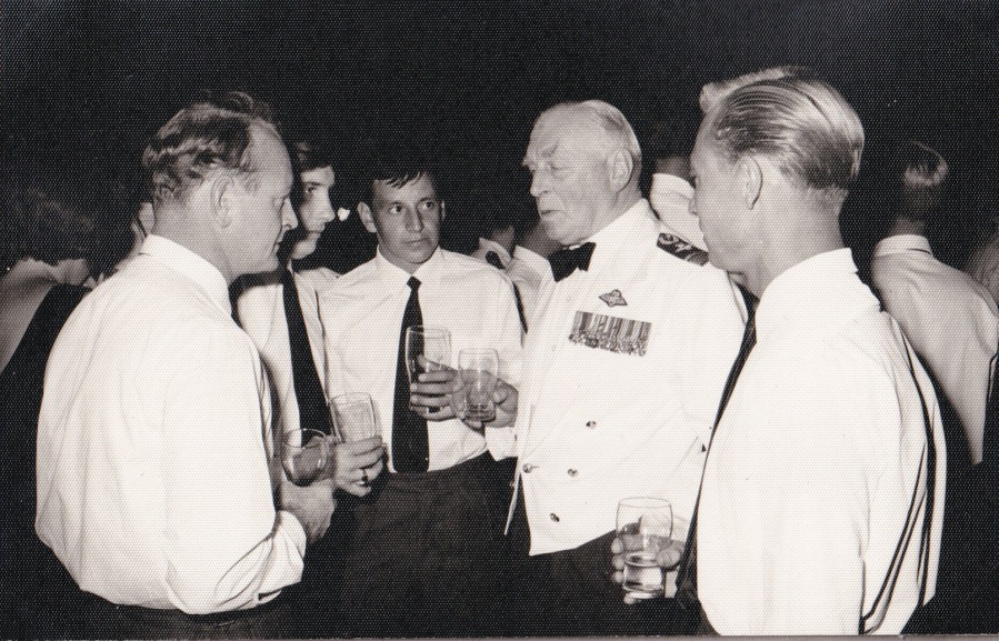 was all over the airmen were happy to chat to Sir Geoffrey and partake of a few ales…. A few….. the rotten 'b's just about drank us dry, not that anyone cared! Well, some of us had to eat and so life slides by gently. Eat, drink and be merry folks! This photo on the right is of another occasion, the Christmas Ball, I think, for Roger Hymans has taken over from Andy Maitland.