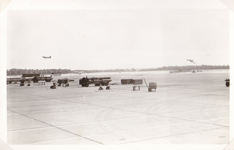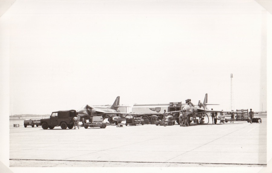 have a typical refuelling scene as two aircraft are 'turned-round' for the next sortie. The conditions are hot,