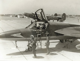2-seater more than anyone. I was being used as safety pilot for squadron pilots practicing for their Instrument Rating Tests (IRTs). If it wasn’t being used for pilot checks, I would ask to take technicians flying. During the year the pilot who had his name on the side of T7 went home. On enquiring as to whose name I should paint on, there was a reluctance by the junior pilots to commit. They were all waiting for single-seaters to become available. While they were dithering, I wheeled the 2-seater away, and had my painters put my name on. I put ENG OFF underneath, so as not to offend the pilots too much.