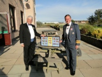 Now, many of you will remember that, at the 2000 Naval Eight 2O8 Reunion Dinner, Michael Pooley, the grandson of our founder, Air Vice-Marshal Sir Geoffrey Bromet, presented Sir Geoffrey’s lifetime awards of orders, decorations and medals and those of his wife, Dame Jean Bromet, to this Association. It was a huge coup for Naval Eight/208 and much of the credit for the discussions which brought about this gift to our Association was due to Gp Capt Philip Pinney, OC 208 between 1977 and 1980. It was also the inspiration for this display being brought together.