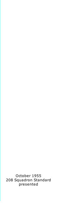 Much has been written in the squadron histories about the parade and flying display in Nov 1955 (7) for the presentation of the first squadron standard by Sir Geoffrey Bromet. We had honed our drill for weeks under the supervision of a Guards Sergeant Major. On the morning of the parade one man reported sick, which left a blank file on one of the flights. This was unacceptable, so the Boss called for two volunteers to fall out. No one did - remarkable, considering that some of them were still National Servicemen.