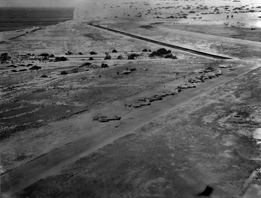 radio and continued calling them until the overhead. Wisely we had not descended, and we could see the island was covered in fog: this was a known phenomenon, so we were forced to turn back to Riyan right at the limit of our endurance. We made straight-in approaches and since the No 1 was very short on fuel, I let him in first. One of his engines flamed out on approach, but I very proudly taxied in on two!!