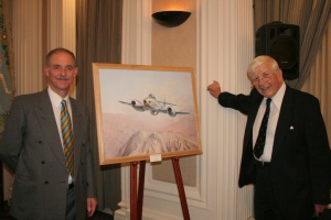 At the 2014 Annual Reunion Dinner, the Guest of Honour, Neil Meadows (who is an avid aviation art collector) brought along some artwork to illustrate the Chapter tables. For the Meteor table, he selected ‘Waking Up Carna Ridge’ – an original oil by Neil Foggo. Mike Bradley immediately recognised the subject aircraft ‘Q Queenie’ as his own trusty steed during his time on 208 Squadron between 1954 and 1957. Pictured here are Neil and Mike with the painting after the dinner. Click HERE to view the painting in the Website Aviation Art Gallery. Click HERE to read Mike’s own presentation to the 2007 Reunion.