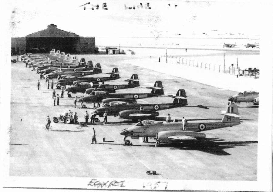 or the final selection board I told them I wanted to be an Armament Fitter. I was most emphatic about that. So it was that I found myself on 3 Apprentice Wing RAF Halton on 9th September 1952 at the tender age of 15 years and 9 months with a lot of other young lads who were to be collectively known as the 72nd Entry. Three years later I passed out at Halton as a Junior Technician, and was posted to the Aircraft Servicing Flight (ASF), RAF Nicosia, Cyprus in September 1955. Early in January 1956 No 26 Armament Practice Camp (26 APC) Unit (operating Meteor Mk 8 target towing aircraft together with a couple of T7 Vampires) were posted en bloc to RAF Takali, Malta. They required an armament fitter, so I was posted onto 26 APC, later to be renamed APC (Middle East), and found myself at Takali, which was to be our base while we travelled around the Middle East airfields towing glider and banner targets for the Fighter Squadrons to carry out their annual air to air firing exercises. Towards the end of 1956 APC(ME) was disbanded and I was cross-posted to 208 Squadron as the NCO i/c Armament Section (I was a Corporal by then), who were also at RAF Takali operating Meteor Mk9 Photo Reconnaissance aircraft.