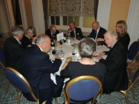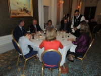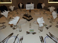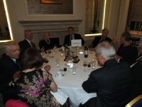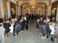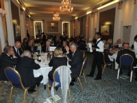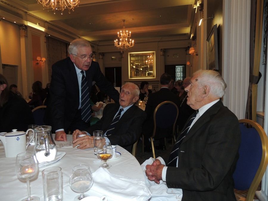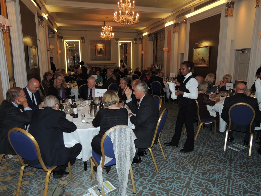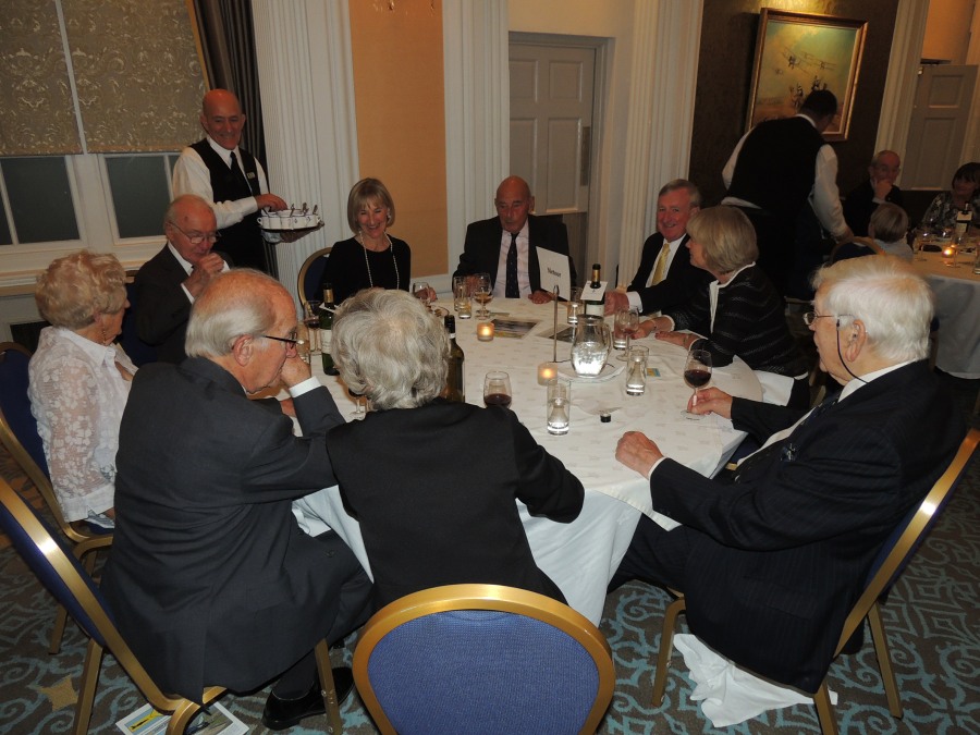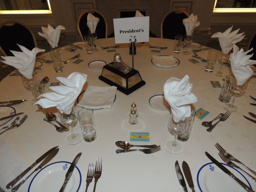 When it was announced that ‘Dinner is Served’, the members repaired to the Ballroom for the meal. Seating was, as per the recent tradition, arranged by ‘Chapter’ to allow former colleagues to continue to reminisce. Resplendent on the President’s table was the Geoffrey Bromet Memorial Trophy, which had been reclaimed from the Squadron by the Association and was now kept in the RAF Club for safekeeping. Following Grace, which was read by Ben Laite, the members tucked into a sumptuous meal prepared and served with the usual expertise by the Chef and staff of the Club.