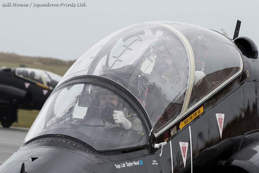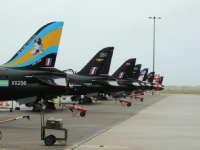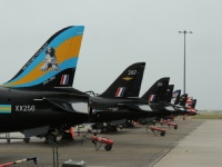 In the meanwhile, OC 208 Squadron (Wing Commander Chris Kidd) was briefing the Graduation 6-Ship flypast, and the crews walked for their aircraft, which comprised representatives from all of the Hawk era, including a pre-2001 original black colour scheme, the ‘standard’ markings introduced in 2001, a ‘Red Arrow’, the Naval Anniversary tail fin and, of course, the 208 Squadron Centenary Tail Fin that naturally was to be the lead aircraft in the formation.