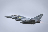 With a very strong southerly wind gusting near the limits, the Formation lined up on the short Runway 19 for a stream take-off instead of the usual vic formation line up. Speaking after the event, OC 208 commented on the awful conditions, particularly after the previous day’s weather in which the Squadron had practised had been ‘clear blue’ with light winds! In fact, he was barely able to see the Llyn Peninsula where the aircraft were due to form up and, with an exceptionally strong ‘tightening wind’, the challenge could not have been greater.