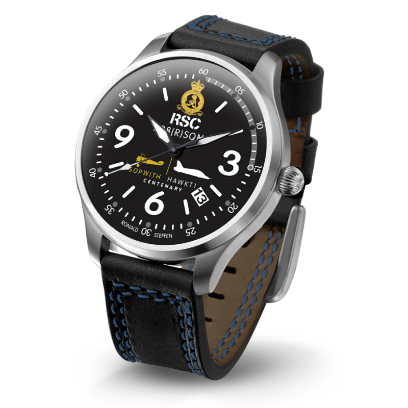 the 208 Squadron aircrew sporting a rather impressive timepiece during their earlier flypast sortie. This was the Limited Edition ‘208(R) Squadron Centenary Edition’ watch from the RSC Pilot’s Watch Collection that had been specially produced for the 100th Anniversary. Designed by Ronald Steffen, the back of the watches are engraved with an etching of the Squadron Crest