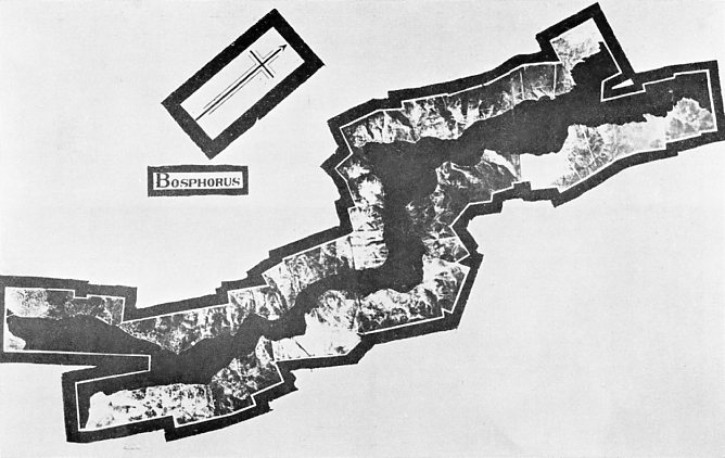 General Sir Charles Harington KCB CMG DSO had been sent to Turkey to negotiate with General Ismet the establishment of an Armistice in preparation for the signing of a peace treaty. During these negotiations the Squadron carried out reconnaissance sorties along the neutral zone, and although the aircraft were forbidden to approach nearer than two miles to the neutral boundary the pilots were able to report Turkish activity in the area. This information was sent by WIT to General Harrington’s ship and was of great value to him in his negotiations with General Ismet. (In the accompanying photograph of the mosaic of the Bosphorous taken in November 1922 shows the use