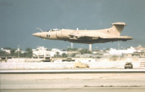 'At 0400 hours, the Station Commander bade us farewell and we took off from Lossiemouth with the paint in some places still wet. My navigator was Carl Wilson and the second aircraft was crewed by Glen Mason and Dick Aitken and we set of to rendezvous with the Tristar tanker over southern England, and then flew together non-stop to Muharraq airport in Bahrain. Another four aircraft followed us over the next few days.'