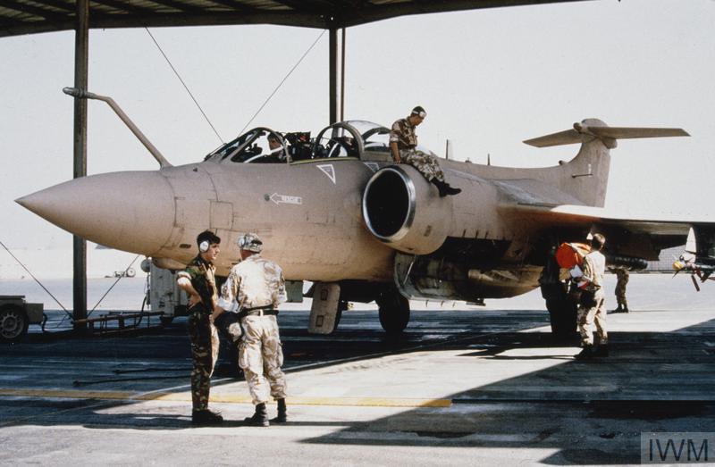 After supporting a Tornado attack, transport aircraft were seen on the ground and Buccaneers attacked them in a steep dive dropping two Paveway 1,00lb bombs each.